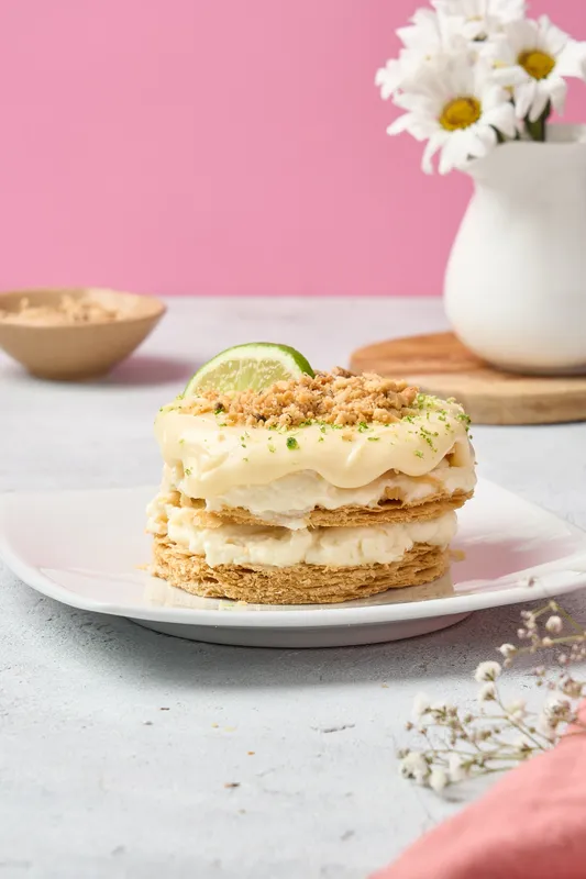 Milhoja Tayrona Personal Hojaldre crocante con ganache de chocolate blanco, macadamia, ralladura de limón y chantilly suave… un equilibrio perfecto entre frescura y dulzura.🍋✨ 👉 Pídela ahora y disfruta esta joya Ammalú.
